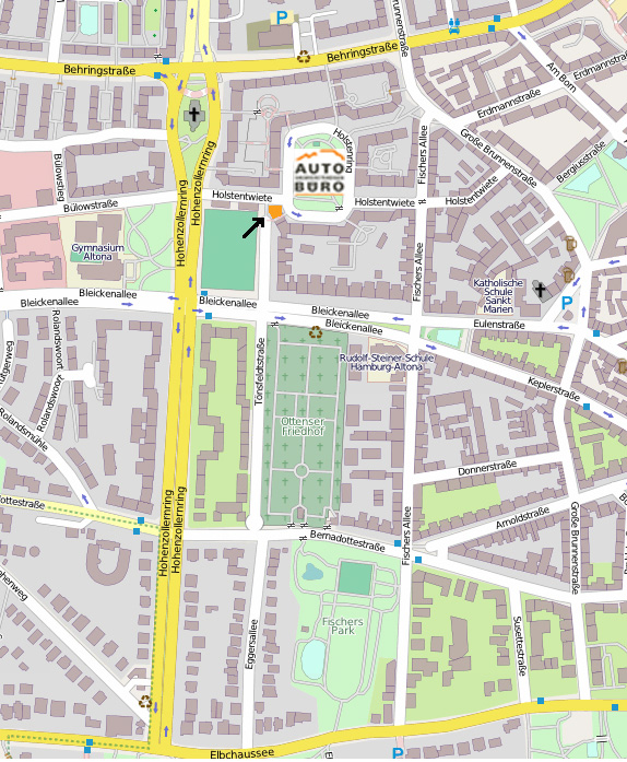 Standort An der Nord-Ost Ecke des Sportplatzes am Hohenzollernring, siehe Karte Karte hergestellt aus OpenStreet Map-Daten | Lizenz: Creative Commons BY-SA 2.0 |